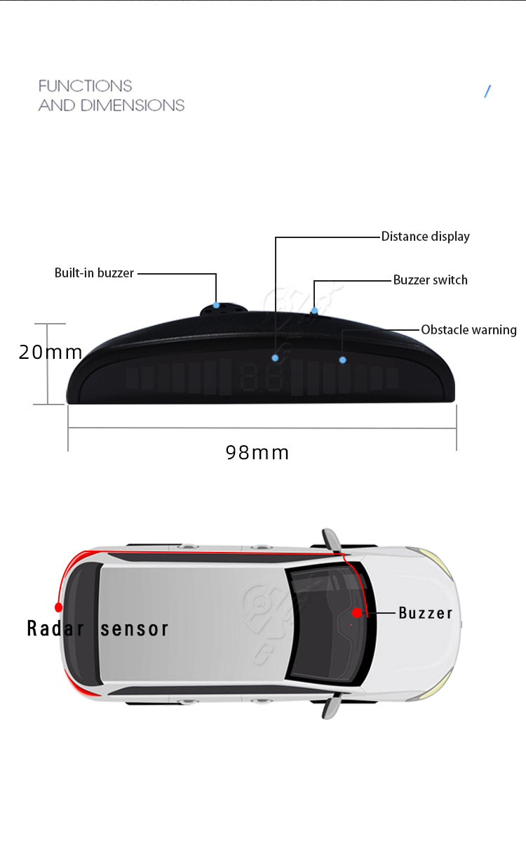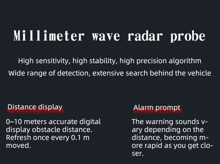 Millimeter wave radar collision warning radar products, by a 24GHZ millimeter wave radar, a two-digit digital display composed. The system can give early warning to the moving obstacles in front of the vehicle, with an accurate ranging range of 0.1-10 meters. 24GHZ millimeter wave radar's unique ability to penetrate smoke, fog, and dust can be applied all day, and detect objects in the signal area in real time. It can detect targets up to 10 meters away, and output a buzzer sound warning according to the warning level.